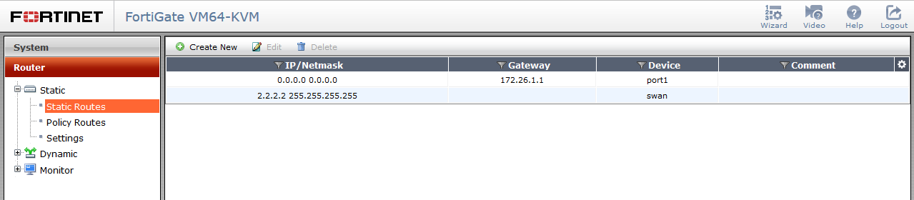 Important: I ran into a bug where the FortiGate showed its interface as up but the static route did not appear in the routing table (it was marked as inactive in the database). In this case, shut down the tunnel interface, then enable it again.